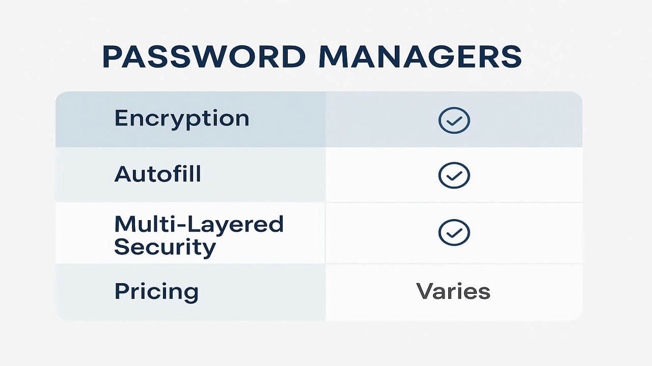 A password manager is a secure app that stores, encrypts, and autofills your passwords across all your devices. Instead of remembering dozens of logins, you only need one master password to access them all.